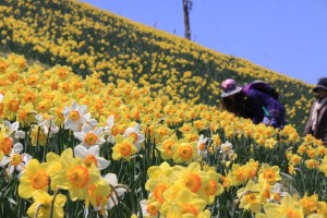 現在、約30万球のスイセンが満開の見頃を迎えています。